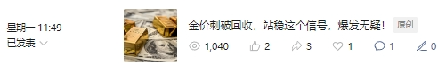 不过后续受地缘局势缓和的因素,金价那叫一个弱,给我搞得心力憔悴,但我们仍明确表示美联储降息对金价会形成短中期的利多,也会继续看涨金价,市场终于给点面子。